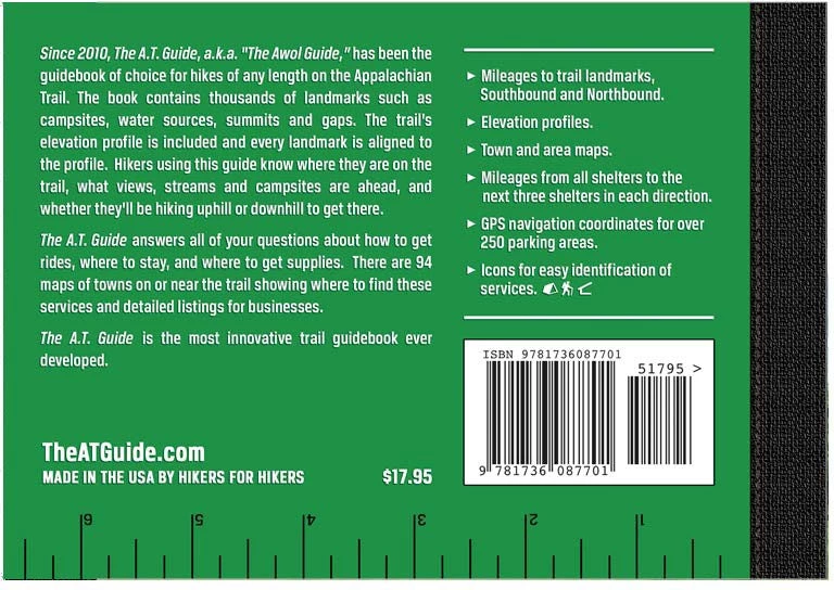 The A.T. Guide, with a horizontal and icon-centric format for A.T. hikes, aligns landmarks to elevation profiles in an at-a-glance fashion, rather than tables, with text and 80 town maps to fill out the guidance. Updated each year, this guide is designed for northbound thru-hikes.