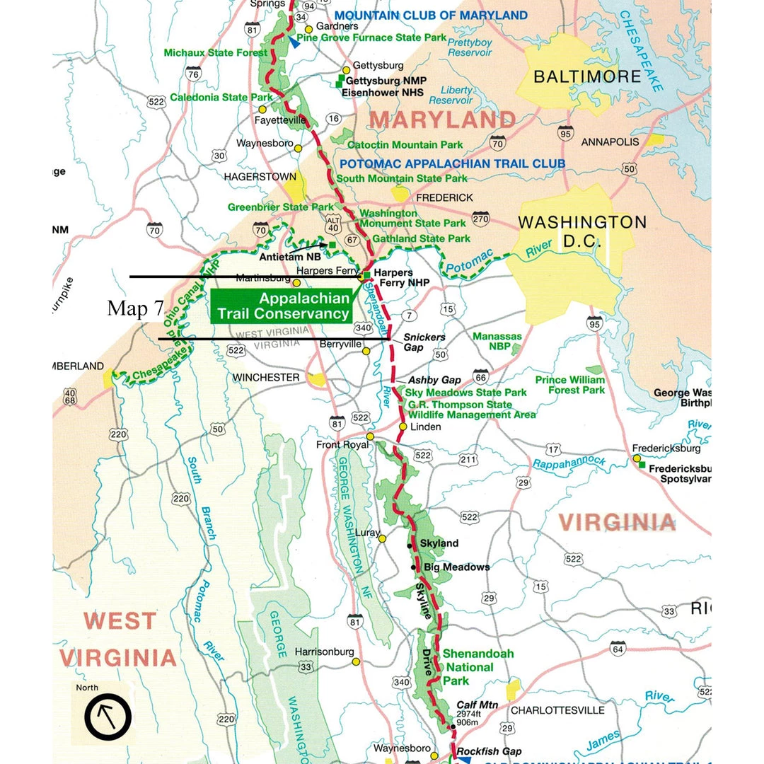 Map 7: Appalachian Trail in West Virginia and Northern Virginia; Potomac River & Harpers Ferry, WV to VA-7.