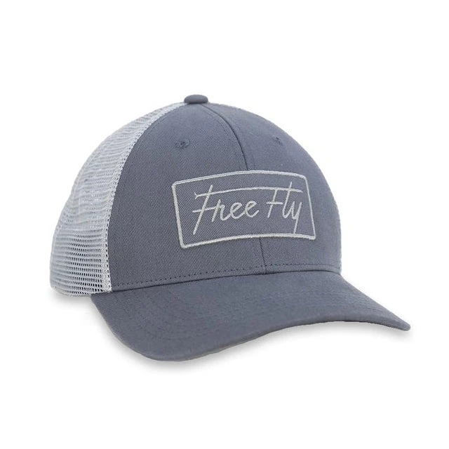 The Pusher Script trucker is our newest spin on a Free Fly classic hat design.