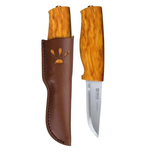 Folkekniven has been in the Helle assortment since 1998. A timeless classic utility knife with long traditions. The steel we use for this knife is Sandvik 12C27 stainless steel – a high-quality steel with great edge retention. The blade is easy to sharpen and holds an edge for a long time, having been heat-treated to 58HRC.