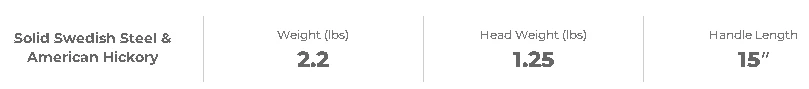 his item has an axe head weight of 1.25 Lbs and a handle length of 15 inches. The head is the product of blasted and clear-lacquered ironwork and the curved shaft is made of US-sourced hickory. The handle is treated with linseed oil.