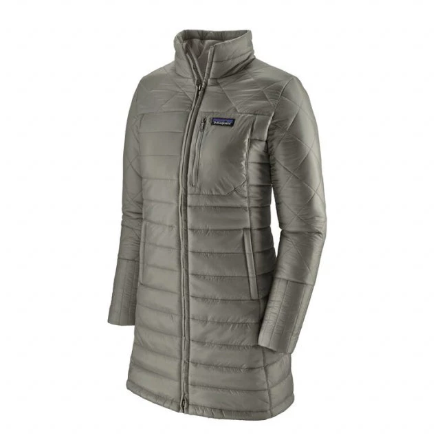 Elude shifty springtime conditions in the Radalie Parka. The shell is made from 100% recycled nylon, and has warm, 150-g Thermogreen 100% polyester (92% recycled) insulation and a DWR (durable water repellent) finish. Brushed tricot liner at inner collar, cuffs and handwarmer pockets for comfort. Center-front zip and stand-up collar keep out the chill. Quilt lines, princess seams and zippered on-seam handwarmer pockets lend a contemporary feminine silhouette, while the left-chest Retro-X style patch pocket gives a nod to our heritage. Inner right-chest stash pocket stashes valuables. Midthigh length. Fair Trade Certified sewn.