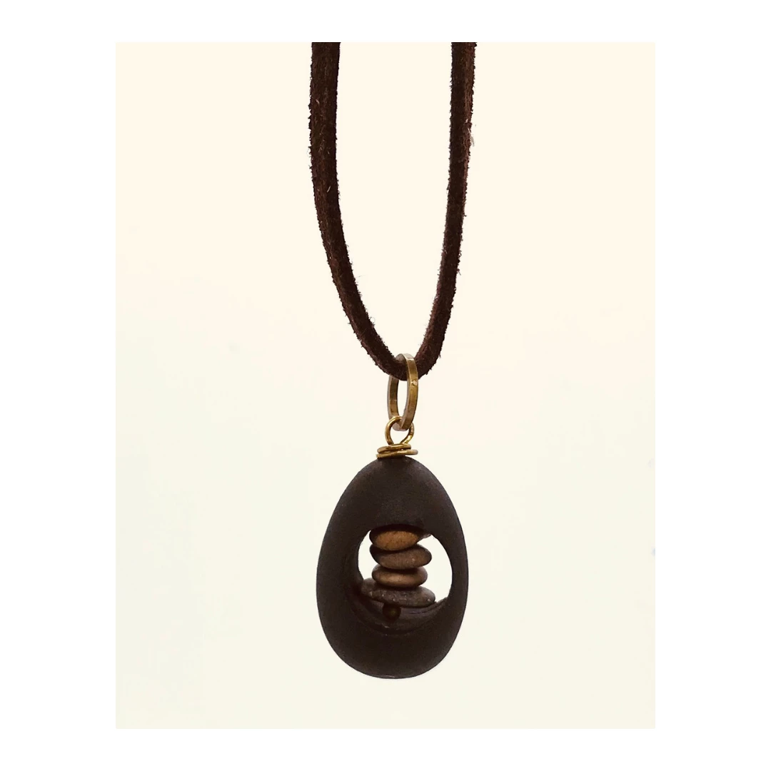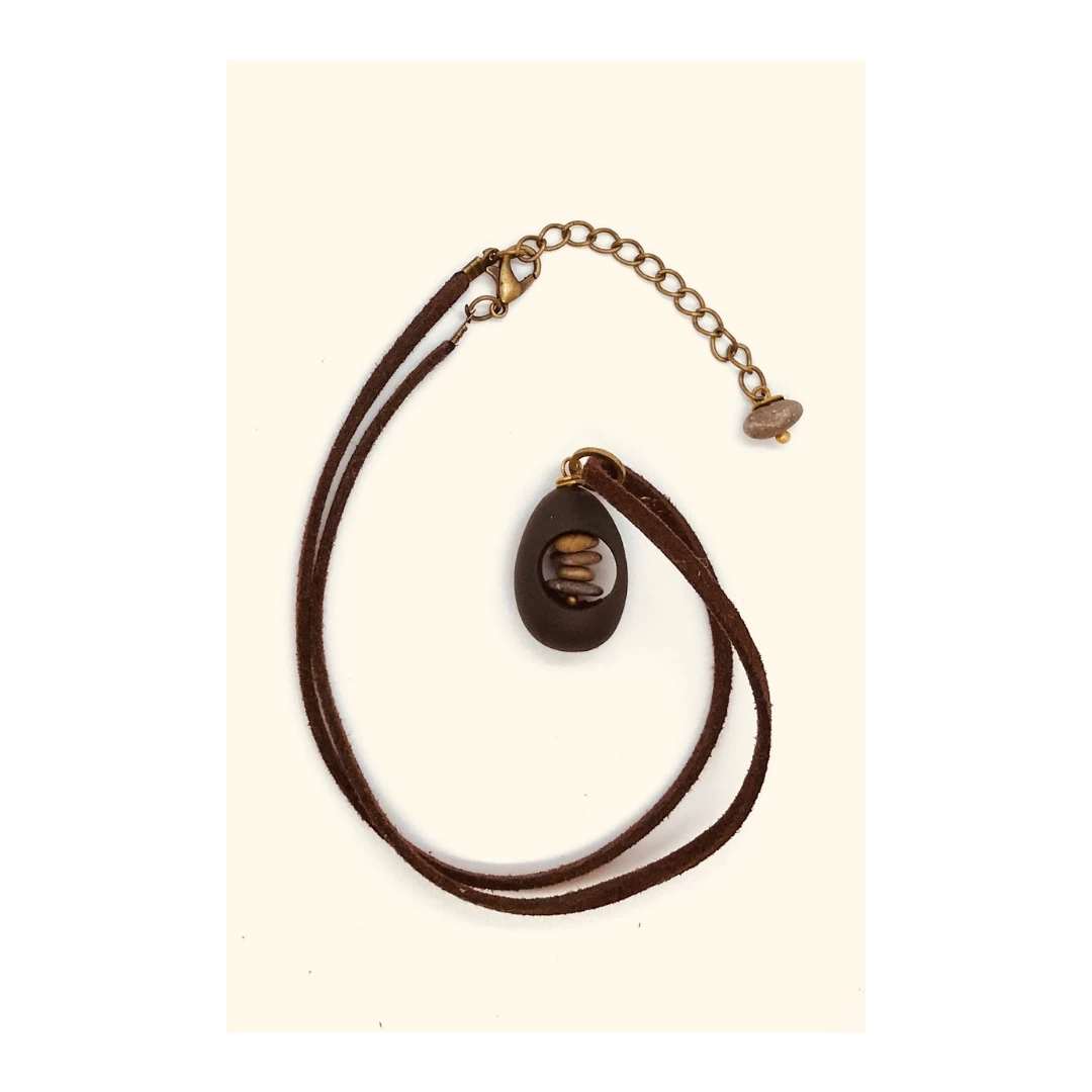 This GORGEOUS necklace is a Leather necklace with cored out stone with smaller stones in the middle.
